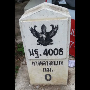 | คำอธิบาย : เป็นเสาหินปูนเตี้ยๆ แสดงตัวเลข เพื่อบอกระยะทาง ตั้งอยู่ริมถนนฝั่งตรงข้ามมหาวิทยาลัยมหิดล ใกล้หอนาฬิกา |
