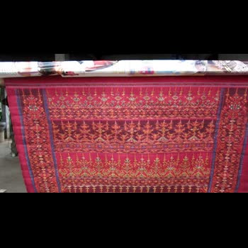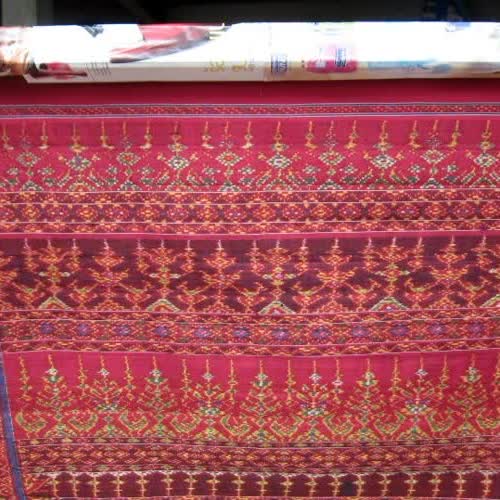| คำอธิบาย : ผ้าไหมมัดหมี่สีธรรมชาติ ด้วยกระบวนการมัดเส้นใยเป็นลายต่างๆ แล้วนำไปย้อมด้วยสีธรรมชาติทั้งหมด จากพืชธรรมชาติ ทั้ง ครั่ง คราม เขและประโหด ทับบนเส้นใยไหมบ้านที่สาวและตีเกลียวด้วยมือทุกกระบวนการ เกิดเป็นผ้าไหมมัดหมี่สีธรรมชาติที่สวยงามของชาวเขมรถิ่นไทย บ้านนาตัง อ.เขวาสินรินทร์ จ.สุรินทร์ |