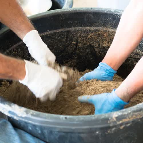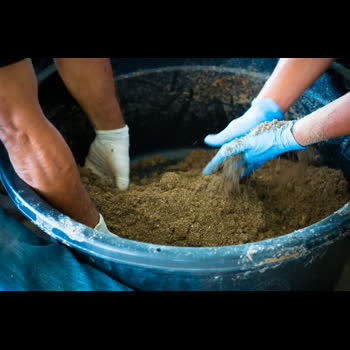 | คำอธิบาย : ค่อยๆ คลุกเคล้าส่วนผสมทั้งแบบแห้งและแบบน้ำให้เข้ากัน ให้ได้ความชื้นที่ 65% ของการทำดังโงะ |