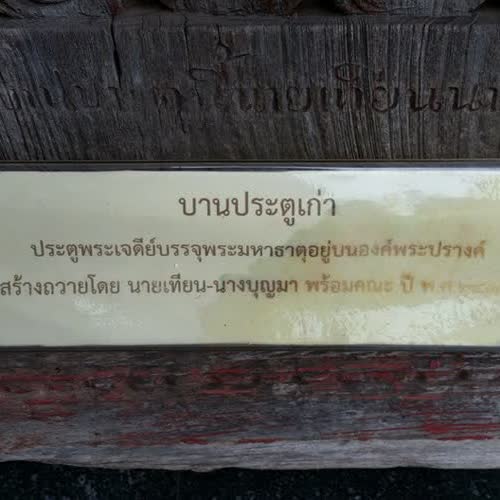 | คำอธิบาย : บานประตูเก่าพระเจดีย์บรรจุพระมหาธาตุ |