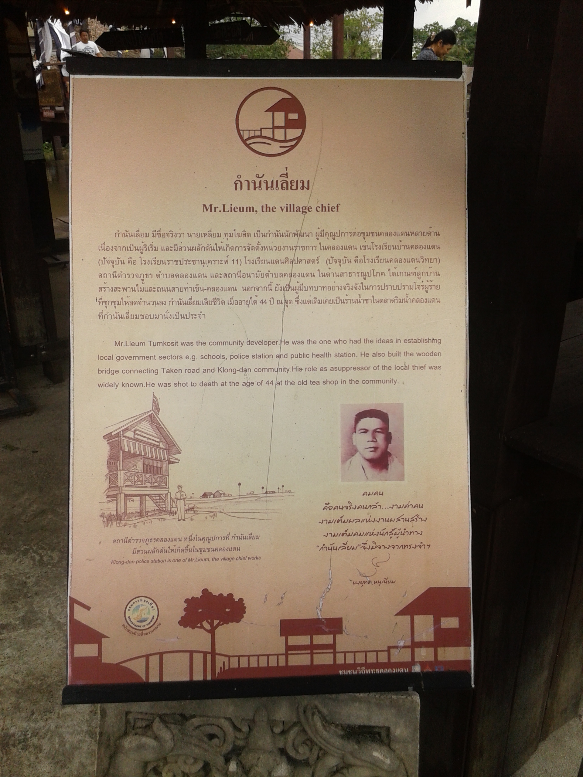 | คำอธิบาย : ความเป็นมาของตลาดน้ำคลองแดนการบอกเล่าความเป็นมาวิถีพุทธของคนในคลองแดนมีแผนที่แสดงแหล่งที่ตั้งของชุนคลองแดนมีการบอกเล่าเกี่ยวกับสถาปัตยกรรมของคลองแดน |