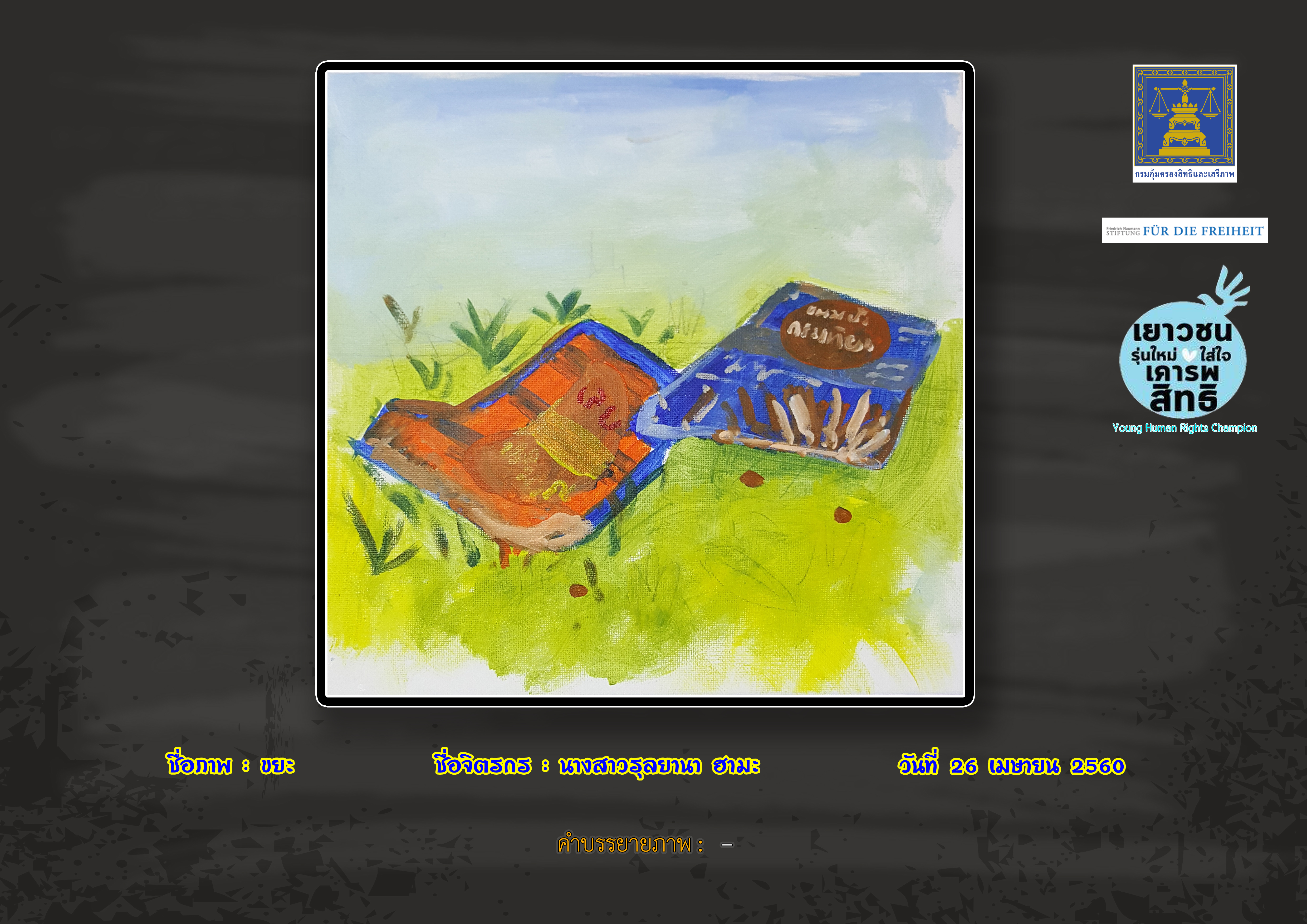 | คำสำคัญ : จิตรกร, เยาวชนรุ่นใหม่ใส่ใจเคารพสิทธิ, ภาพวาด, Young Human Rights Champion |