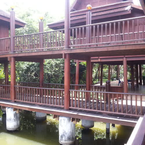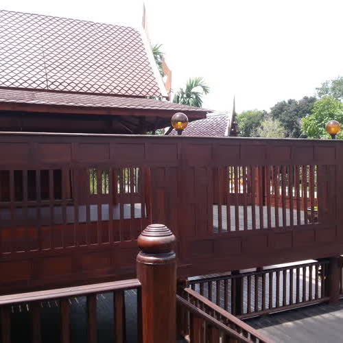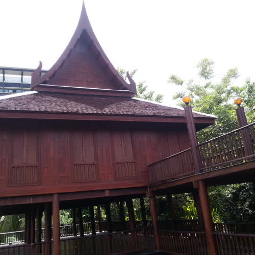 | คำอธิบาย : เป็นเรือนหมู่ ทรงไทย ปลูกสร้างด้วยไม้ ตามแบบโบราณ มักมีบุคคลทั้งภายในและภายนอกมหาวิทยาลัย มาชื่นชมสถาปัตยกรรมเสมอๆ เรือนไทยอยู่ในความดูแล ของ สถาบันวิจัยภาษาและวัฒนธรรมเอเซีย มหาวิทยาลัยมหิดล |