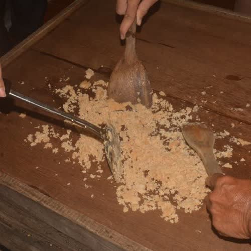 | คำอธิบาย : การอธิบายถึงขั้นตอนการทำและกรรมวิธีการทำน้ำตาลจากจากต้นจากของชุมชนขนาบนาก อำเภอปากพนัง จังหวัดนครศรีธรรมราช |