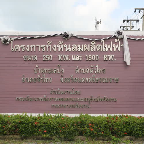 (2560). "โครงสร้างสถานที่โครงการกังหันลมผลิตไฟฟ้า อ.หัวไทร จ.นครศรีธรรมราช".