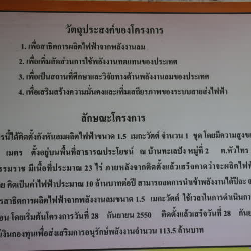 | คำสำคัญ : กังหันลมผลิตไฟฟ้า, สถานที่ |