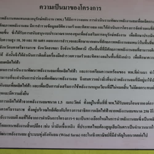 รีวิว : โครงสร้างสถานที่โครงการกังหันลมผลิตไฟฟ้า อ.หัวไทร จ.นครศรีธรรมราช