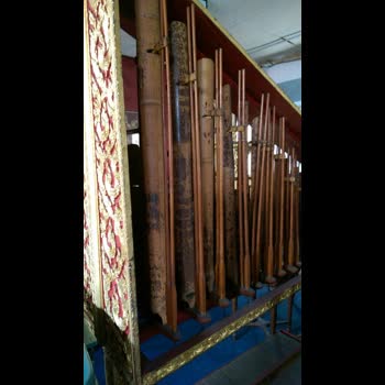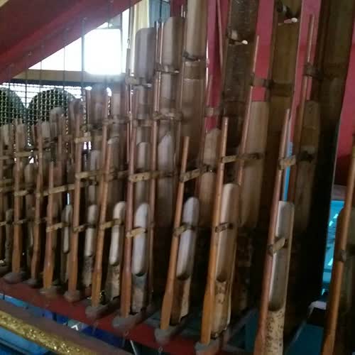 | คำอธิบาย : อังกะลุงราว เครื่องดนตรีเขย่า เป็นเครื่องดนตรีร่วมสมัย ที่ศาสตราจารย์ ดร.อุทิศ นาคสวัสดิ์ เป็นผู้ประดิษฐ์ขึ้น ใช้ผู้เล่นเพียงคนเดียวสามารถเล่นได้เสียงดนตรี 7 เสียง |
