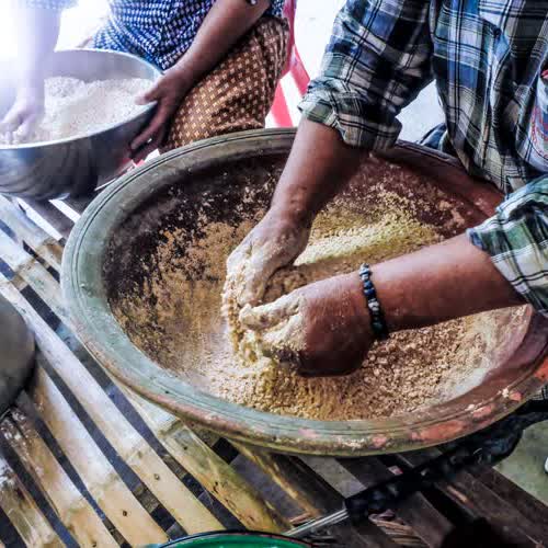 | ชื่อเรื่อง : การนวดส่วนผสมไส้ขนมกง |