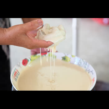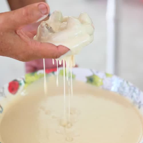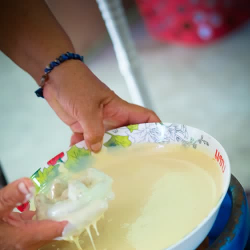 คำอธิบาย : นำเอาไว้ขนมกงมาชุบแป้งเพื่อรอทอด |