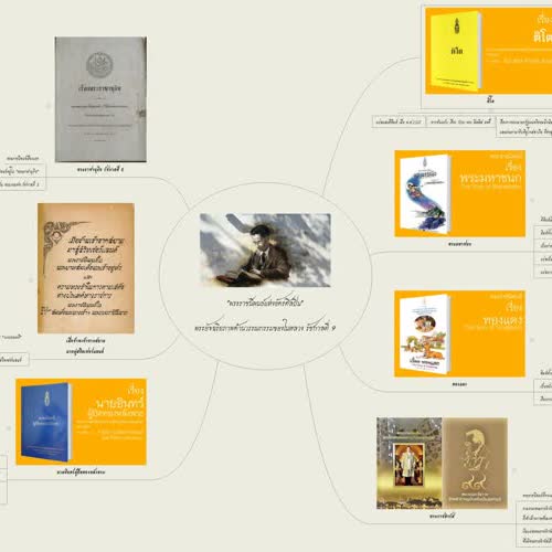 | คำอธิบาย : แผนผังความคิด เรื่อง พระราชนิพนธ์แห่งอัครศิลปิน พระอัจฉริยภาพด้านวรรณกรรมของในหลวง รัชกาลที่ 9 ผลงานของผู้เข้าอบรม โครงการอบรมเชิงปฏิบัติการ หลักสูตร \\\\\\\"การสร้างแผนที่ความคิด (Mind Map) ด้วยโปรแกรม Open Source : XMind\\\\\\\" วันศุกร์ที่ 18 สิงหาคม 2560 เวลา 8.30 - 16.30 น. ณ ห้องปฏิบัติการคอมพิวเตอร์ 101 ชั้น 1 อาคารสำนักงานอธิการบดี มหาวิทยาลัยมหิดล ศาลายา เพื่อสร้างสรรค์ผลงานเข้าคลังทรัพยากรการศึกษาแบบเปิด หอสมุดและคลังความรู้มหาวิทยาลัยมหิดล (Mahidol Libraries OER)บนพื้นฐานของการไม่ละเมิดลิขสิทธิ์ |