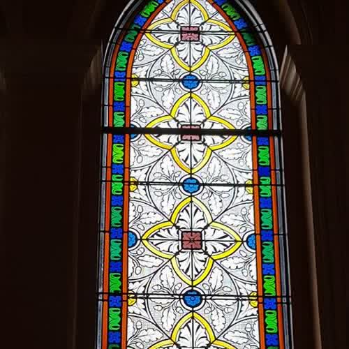 | คำอธิบาย : กระจกสี สเตนกลาส ศิลปะหน้าต่างโบสถ์คาทอลิกจันทบุรี หรือ อาสนวิหารพระนางมารีอาปฏิสนธินิรมล ซึ่งเป็นโบสถ์คริสต์คาทอลิกเก่าแก่ที่มีความสวยงามมาก เป็นสถาปัตยกรรมตะวันตกแบบโกธิค ถือว่าเป็น Unseen แห่งหนึ่งของเมืองจันทบุรี ตั้งอยู่ในตัวเมืองจันทบุรี บริเวณชุมชนริมน้ำจันทบูร |