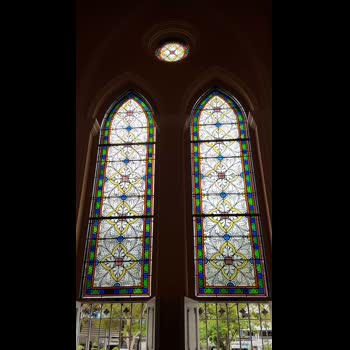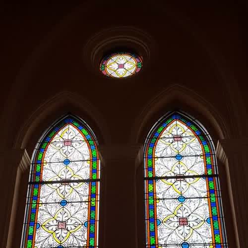 | คำอธิบาย : กระจกสี สเตนกลาส ศิลปะหน้าต่างโบสถ์คาทอลิกจันทบุรี หรือ อาสนวิหารพระนางมารีอาปฏิสนธินิรมล ซึ่งเป็นโบสถ์คริสต์คาทอลิกเก่าแก่ที่มีความสวยงามมาก เป็นสถาปัตยกรรมตะวันตกแบบโกธิค ถือว่าเป็น Unseen แห่งหนึ่งของเมืองจันทบุรี ตั้งอยู่ในตัวเมืองจันทบุรี บริเวณชุมชนริมน้ำจันทบูร |