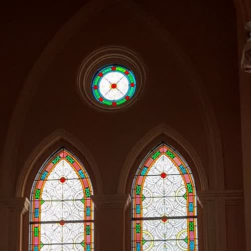 | คำอธิบาย : กระจกสี สเตนกลาส ศิลปะหน้าต่างโบสถ์คาทอลิกจันทบุรี หรือ อาสนวิหารพระนางมารีอาปฏิสนธินิรมล ซึ่งเป็นโบสถ์คริสต์คาทอลิกเก่าแก่ที่มีความสวยงามมาก เป็นสถาปัตยกรรมตะวันตกแบบโกธิค ถือว่าเป็น Unseen แห่งหนึ่งของเมืองจันทบุรี ตั้งอยู่ในตัวเมืองจันทบุรี บริเวณชุมชนริมน้ำจันทบูร |