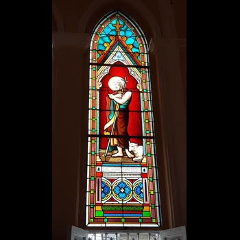 | คำอธิบาย : กระจกสี สเตนกลาส ศิลปะหน้าต่างโบสถ์คาทอลิกจันทบุรี หรือ อาสนวิหารพระนางมารีอาปฏิสนธินิรมล ซึ่งเป็นโบสถ์คริสต์คาทอลิกเก่าแก่ที่มีความสวยงามมาก เป็นสถาปัตยกรรมตะวันตกแบบโกธิค ถือว่าเป็น Unseen แห่งหนึ่งของเมืองจันทบุรี ตั้งอยู่ในตัวเมืองจันทบุรี บริเวณชุมชนริมน้ำจันทบูร |