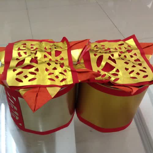 | คำอธิบาย : เทียนเถ่าจี๊ กระดาษเงินกระดาษทองขนาดใหญ่ พื้นสีแดง มีกระดาษฉลุคำอวยพรภาษาจีนแปะอยู่ กิมเต้าหงึ๊งเต้า กระดาษเงินกระดาษทองมีลักณะทรงกระบอกคู่ แทนถังเงินถังทอง เทียนเถ่าจี๊และกิมเต้าหงึ๊งเต้า นิยมใช้ร่วมกันสำหรับไหว้เทพเจ้า |