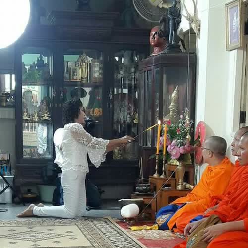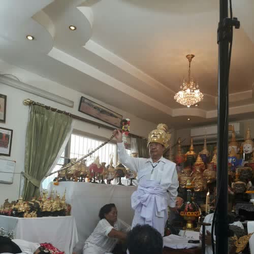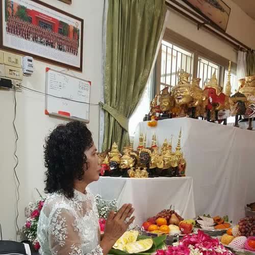 พิธีไหว้ครูประจำปี ได้รับใบอนุญาตภายใต้ ให้เผยแพร่-โดยต้องระบุที่มาแต่ห้ามดัดแปลงและห้ามใช้เพื่อการค้า 3.0 Thailand.