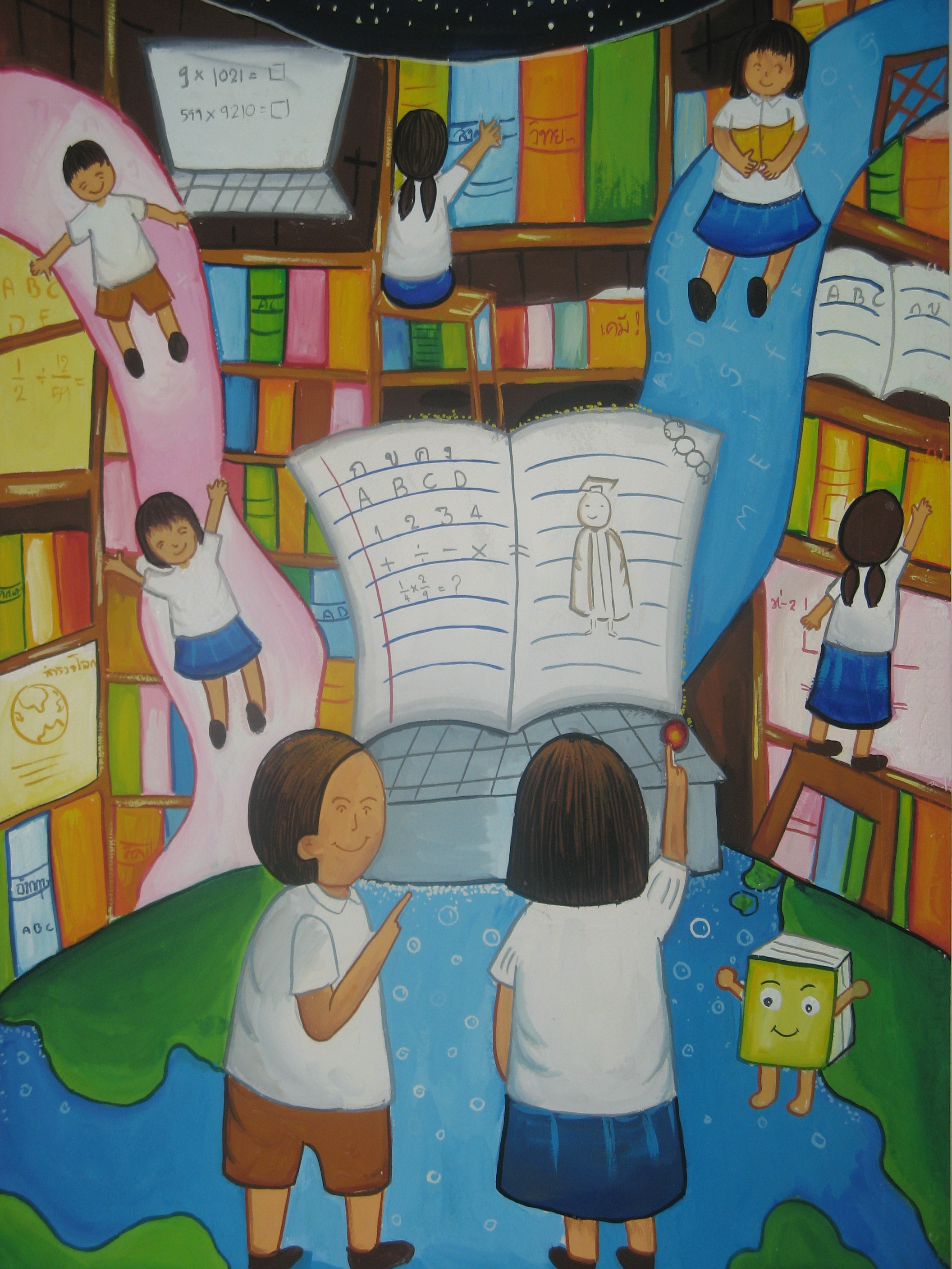 ภาพวาดห้องสมุดในฝัน ได้รับใบอนุญาตภายใต้ ให้เผยแพร่-โดยต้องระบุที่มาแต่ห้ามดัดแปลงและห้ามใช้เพื่อการค้า 3.0 Thailand.