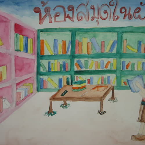 | ชื่อเรื่อง : ภาพวาดห้องสมุดในฝัน |