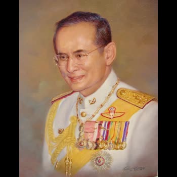 | คำอธิบาย : พระบรมฉายาสาทิสลักษณ์ พระบาทสมเด็จพระปรมินทรมหาภูมิพลอดุลยเดช ด้วยเทคนิคภาพวาดสีน้ำมัน |