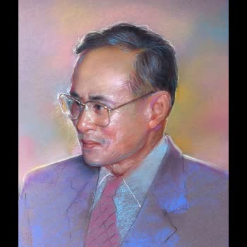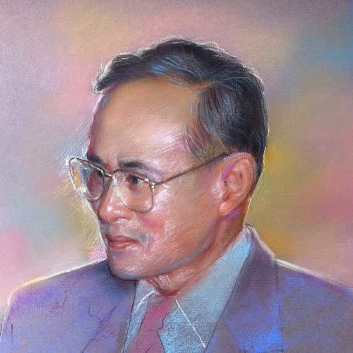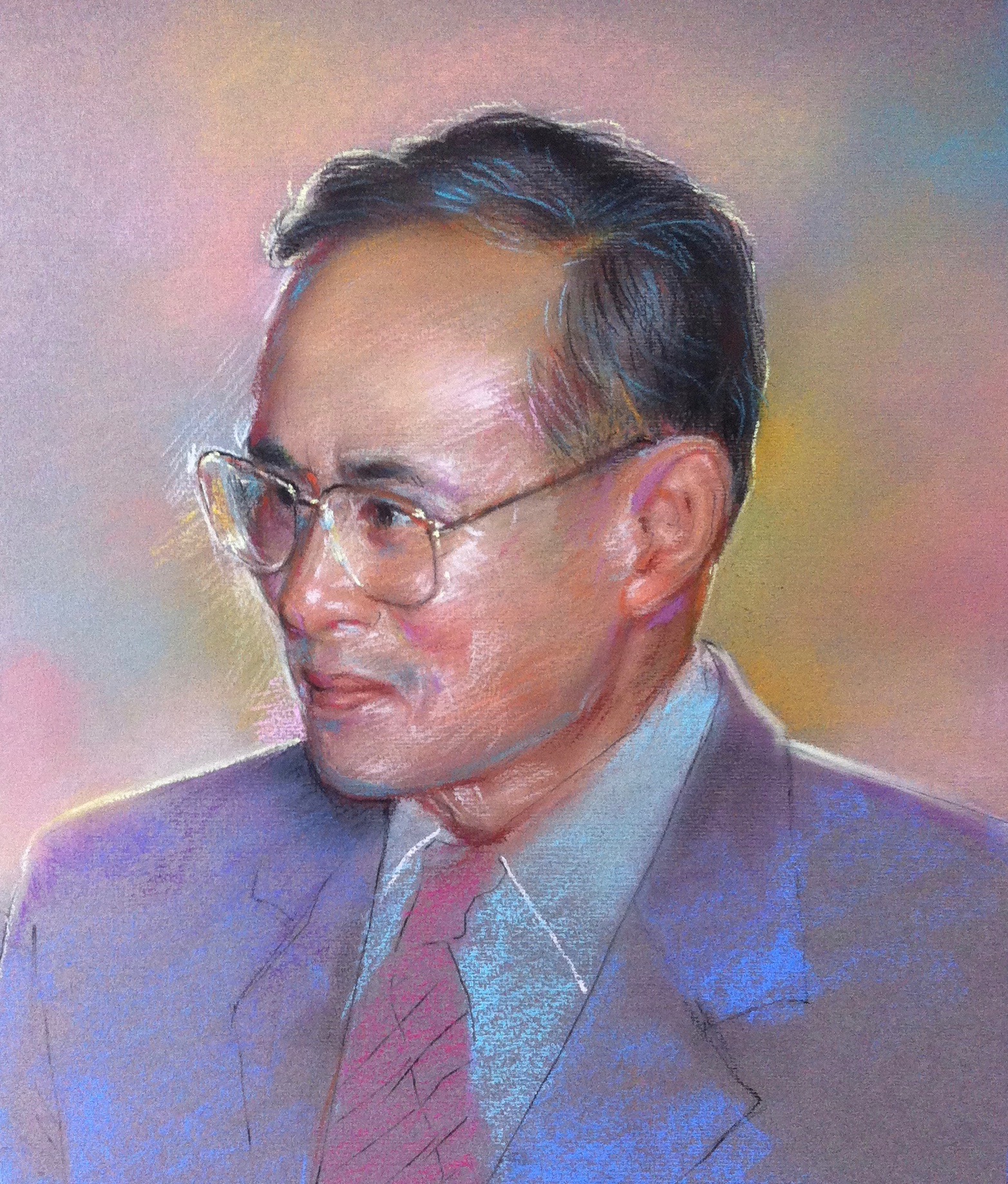 | คำอธิบาย : พระบรมฉายาสาทิสลักษณ์ พระบาทสมเด็จพระปรมินทรมหาภูมิพลอดุลยเดช ด้วยเทคนิคภาพวาดสีชอล์ก |