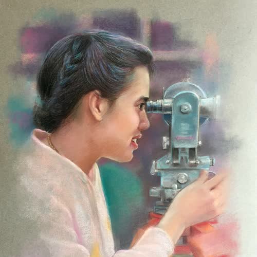 | คำอธิบาย : พระฉายาสาทิสลักษณ์ สมเด็จพระเทพรัตนราชสุดาฯ สยามบรมราชกุมารี ด้วยเทคนิคภาพวาดสีชอล์ก |