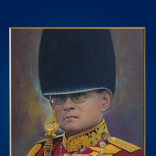 | คำอธิบาย : พระบรมฉายาสาทิสลักษณ์ พระบาทสมเด็จพระปรมินทรมหาภูมิพลอดุลยเดช ด้วยเทคนิคภาพวาดสีน้ำมัน |