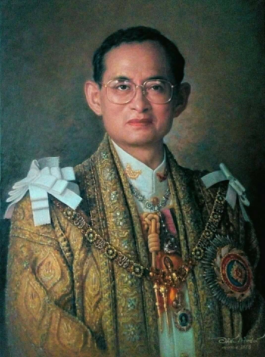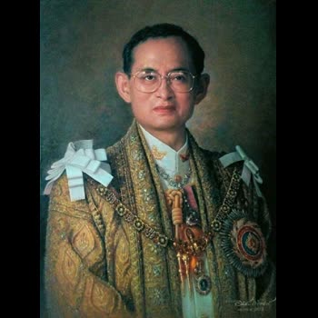 | คำอธิบาย : พระบรมฉายาสาทิสลักษณ์ พระบาทสมเด็จพระปรมินทรมหาภูมิพลอดุลยเดช ด้วยเทคนิคภาพวาดสีน้ำมัน |