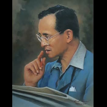 | คำอธิบาย : พระบรมฉายาสาทิสลักษณ์ พระบาทสมเด็จพระปรมินทรมหาภูมิพลอดุลยเดช ด้วยเทคนิคภาพวาดสีน้ำมัน |