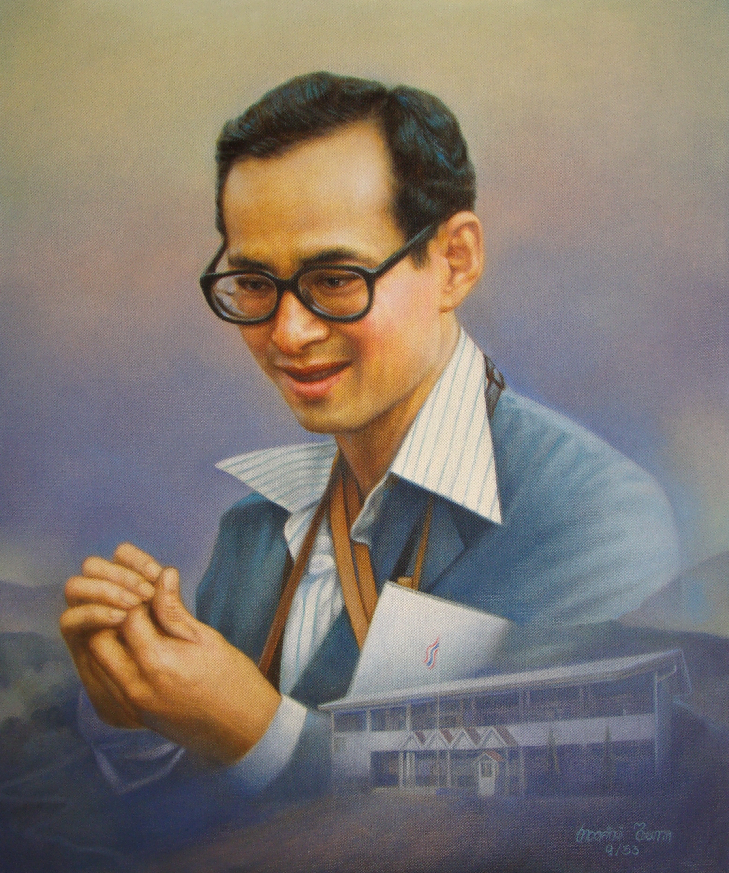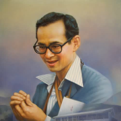 | คำอธิบาย : พระบรมฉายาสาทิสลักษณ์ พระบาทสมเด็จพระปรมินทรมหาภูมิพลอดุลยเดช ด้วยเทคนิคภาพวาดสีน้ำมัน |
