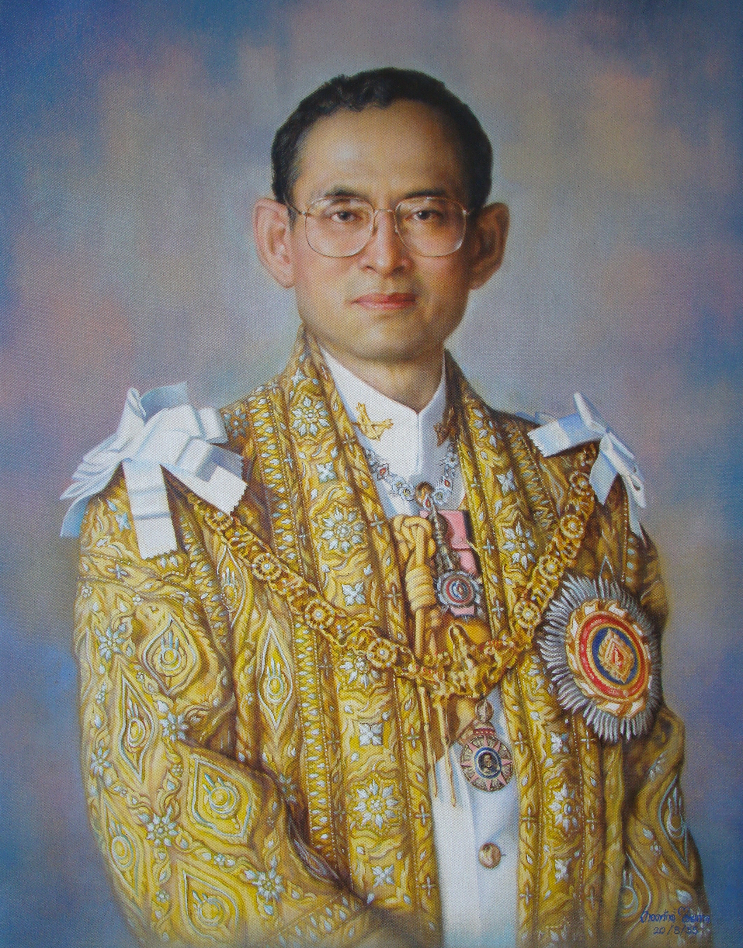 | คำอธิบาย : พระบรมฉายาสาทิสลักษณ์ พระบาทสมเด็จพระปรมินทรมหาภูมิพลอดุลยเดช ด้วยเทคนิคภาพวาดสีน้ำมัน |