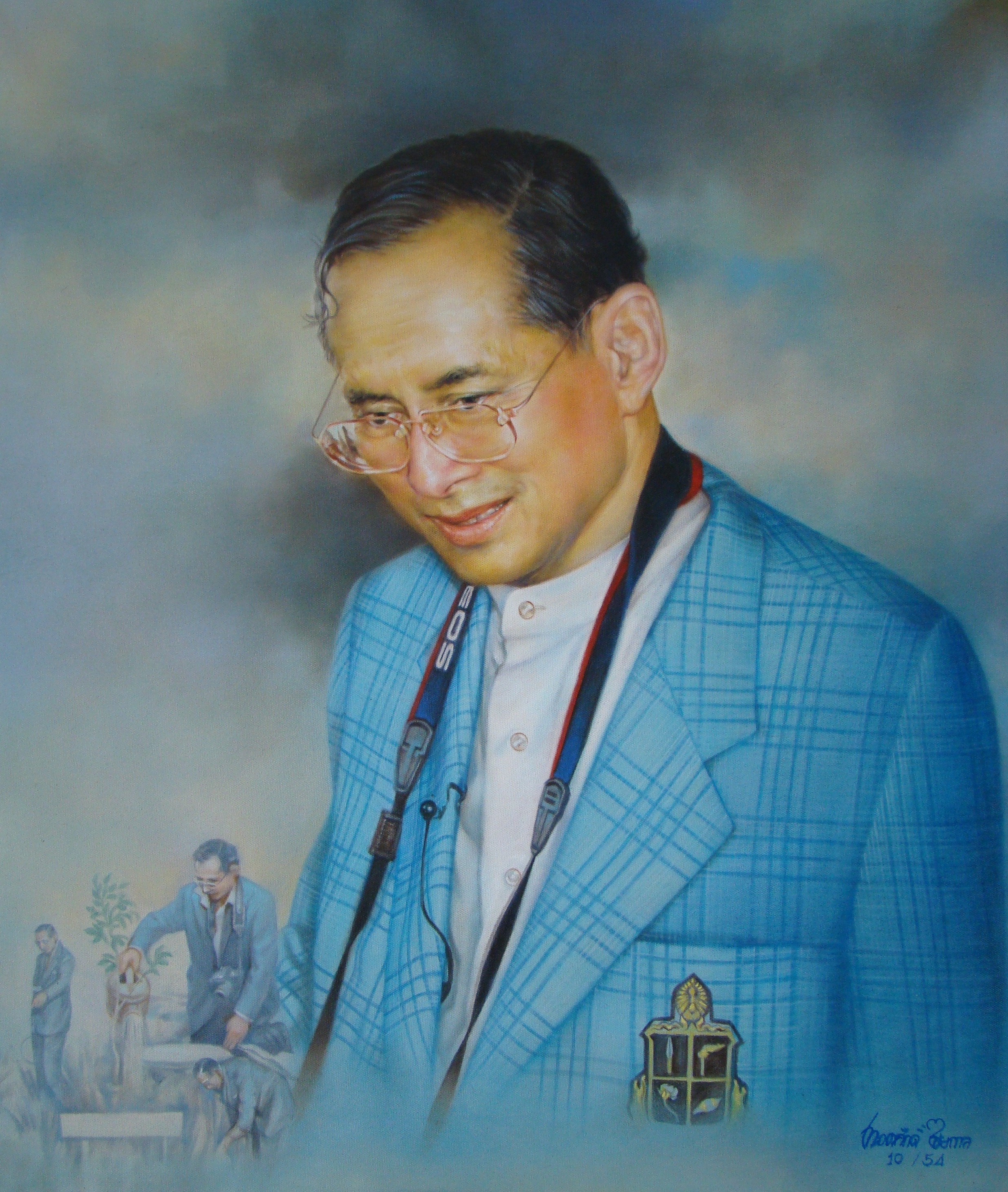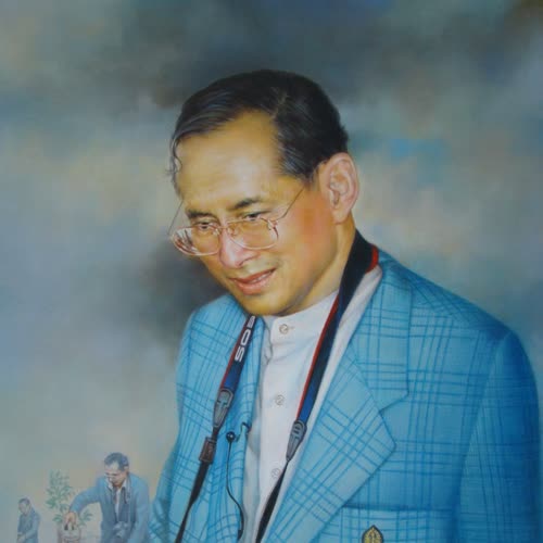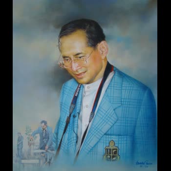 | คำอธิบาย : พระบรมฉายาสาทิสลักษณ์ พระบาทสมเด็จพระปรมินทรมหาภูมิพลอดุลยเดช ด้วยเทคนิคภาพวาดสีน้ำมัน |