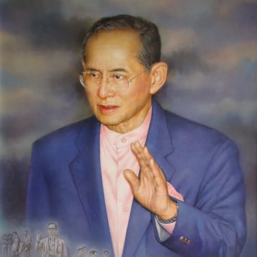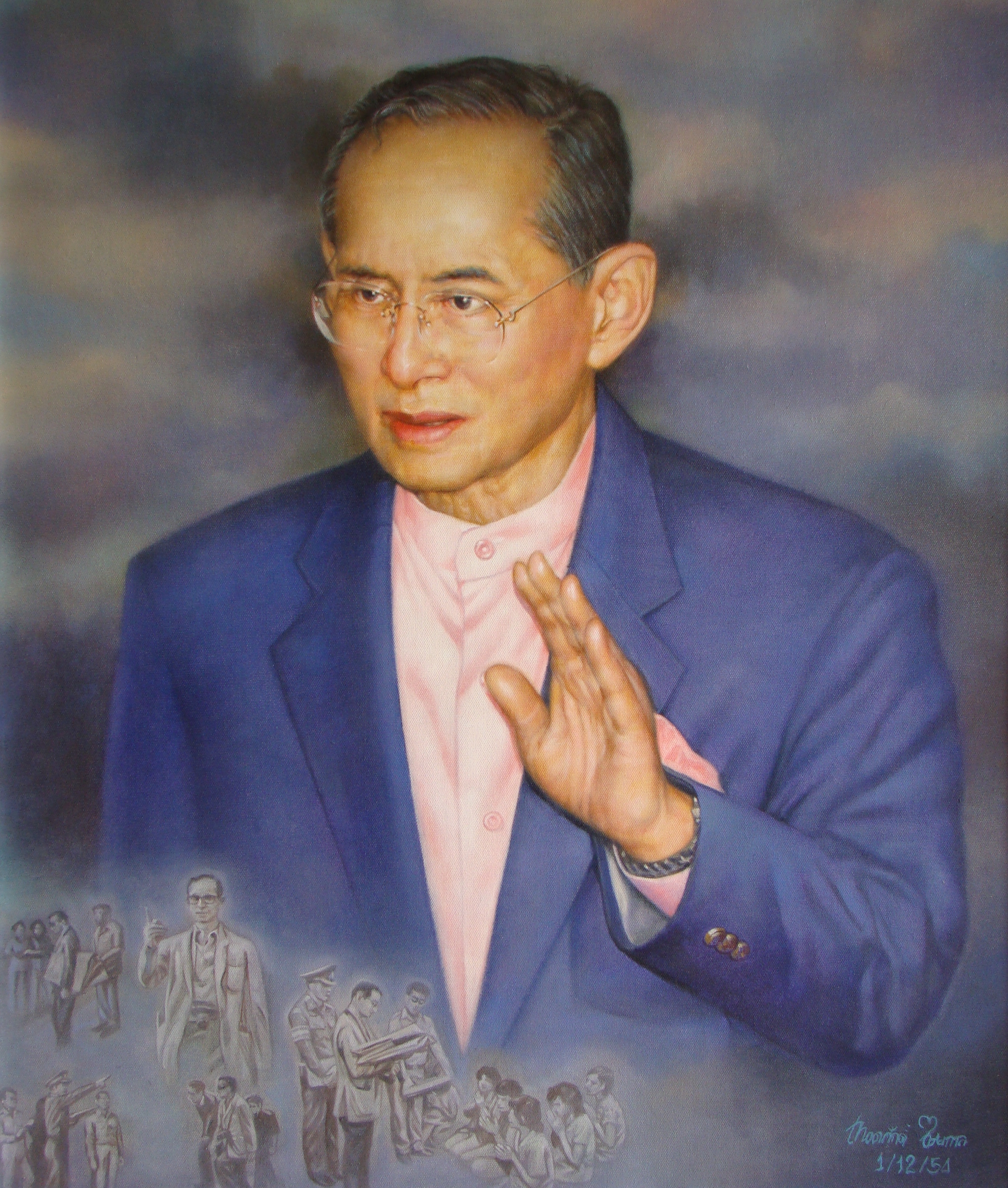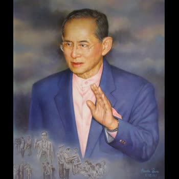 | คำอธิบาย : พระบรมฉายาสาทิสลักษณ์ พระบาทสมเด็จพระปรมินทรมหาภูมิพลอดุลยเดช ด้วยเทคนิคภาพวาดสีน้ำมัน |