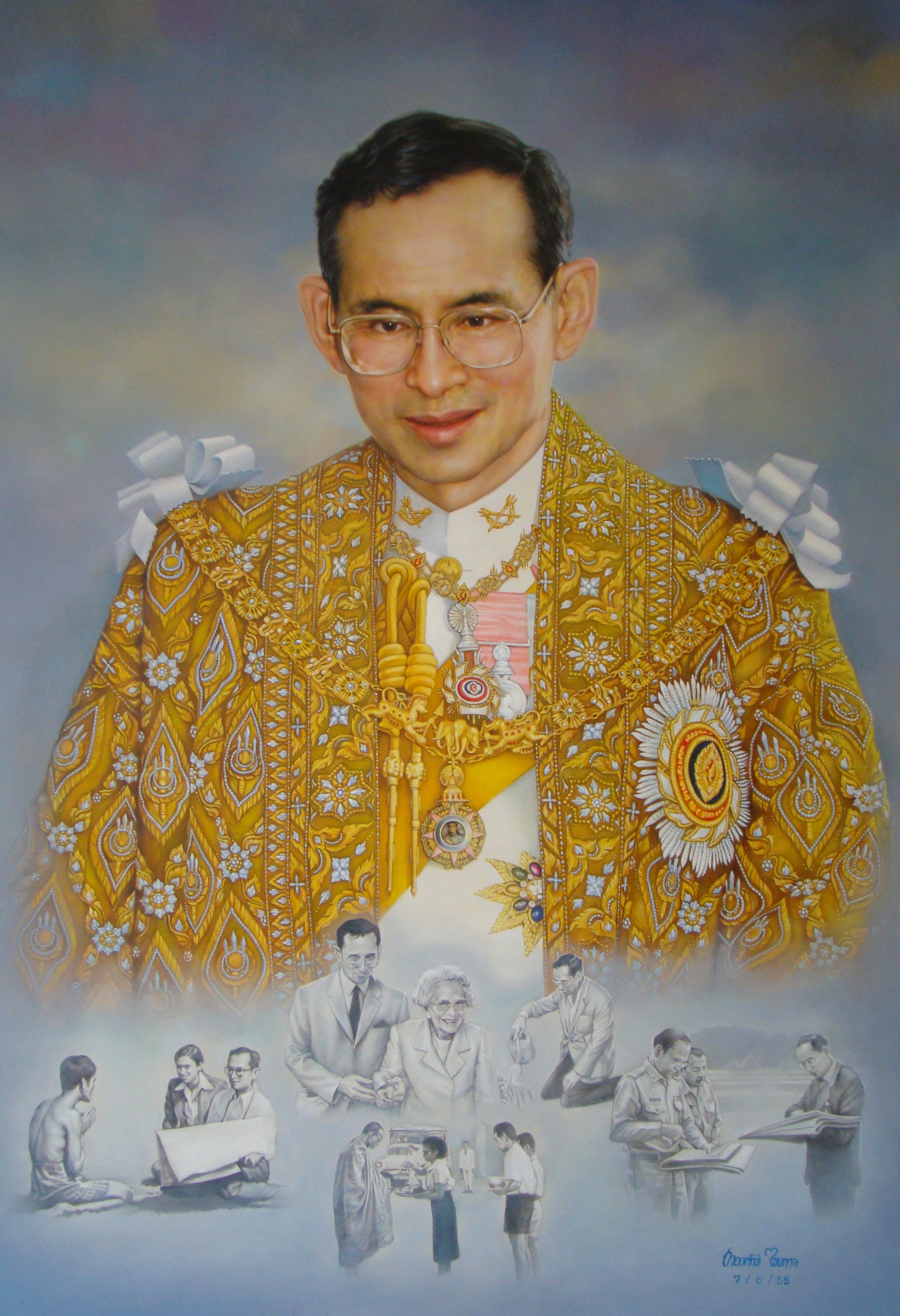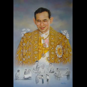 | คำอธิบาย : พระบรมฉายาสาทิสลักษณ์ พระบาทสมเด็จพระปรมินทรมหาภูมิพลอดุลยเดช ด้วยเทคนิคภาพวาดสีน้ำมัน |