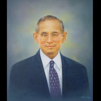 | คำอธิบาย : พระบรมฉายาสาทิสลักษณ์ พระบาทสมเด็จพระปรมินทรมหาภูมิพลอดุลยเดช ด้วยเทคนิคภาพวาดสีน้ำมัน |