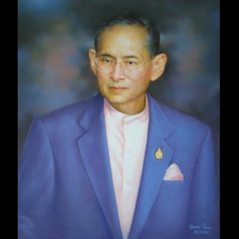 | คำอธิบาย : พระบรมฉายาสาทิสลักษณ์ พระบาทสมเด็จพระปรมินทรมหาภูมิพลอดุลยเดช ด้วยเทคนิคภาพวาดสีน้ำมัน |