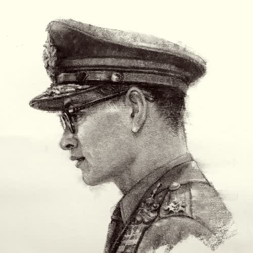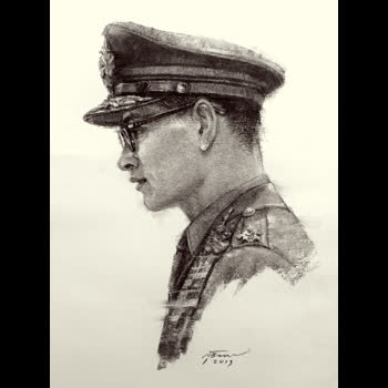 | คำอธิบาย : พระบรมฉายาสาทิสลักษณ์ พระบาทสมเด็จพระปรมินทรมหาภูมิพลอดุลยเดช ด้วยเทคนิค ชาร์โคลบนกระดาษ |