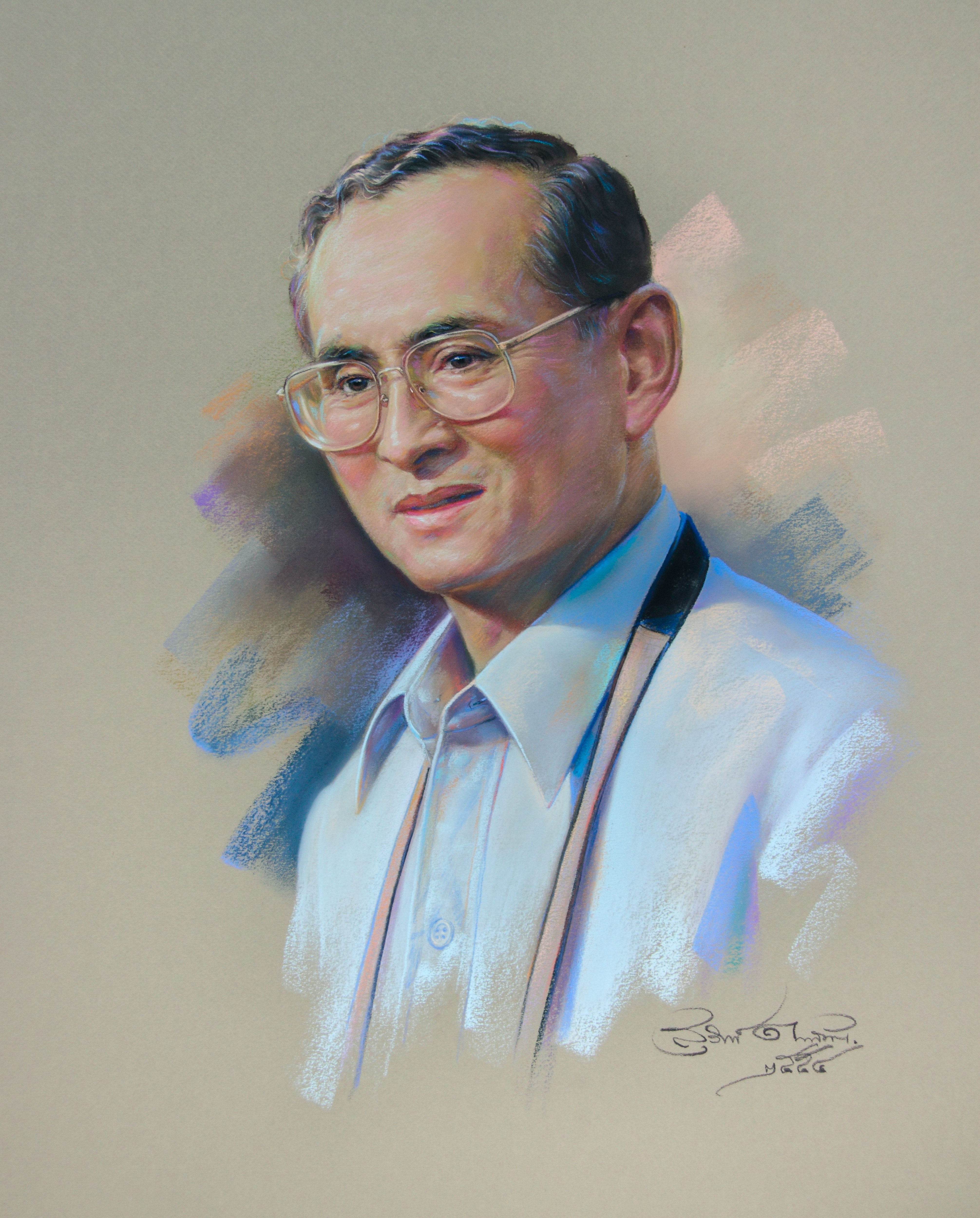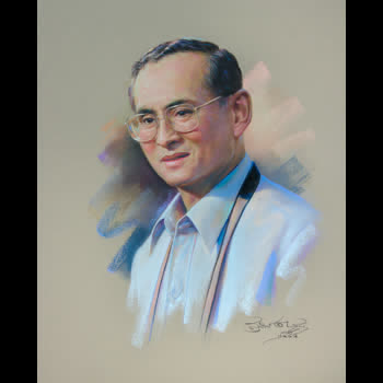 | คำอธิบาย : พระบรมฉายาสาทิสลักษณ์ พระบาทสมเด็จพระปรมินทรมหาภูมิพลอดุลยเดช ด้วยเทคนิค ภาพสีชอล์ก |