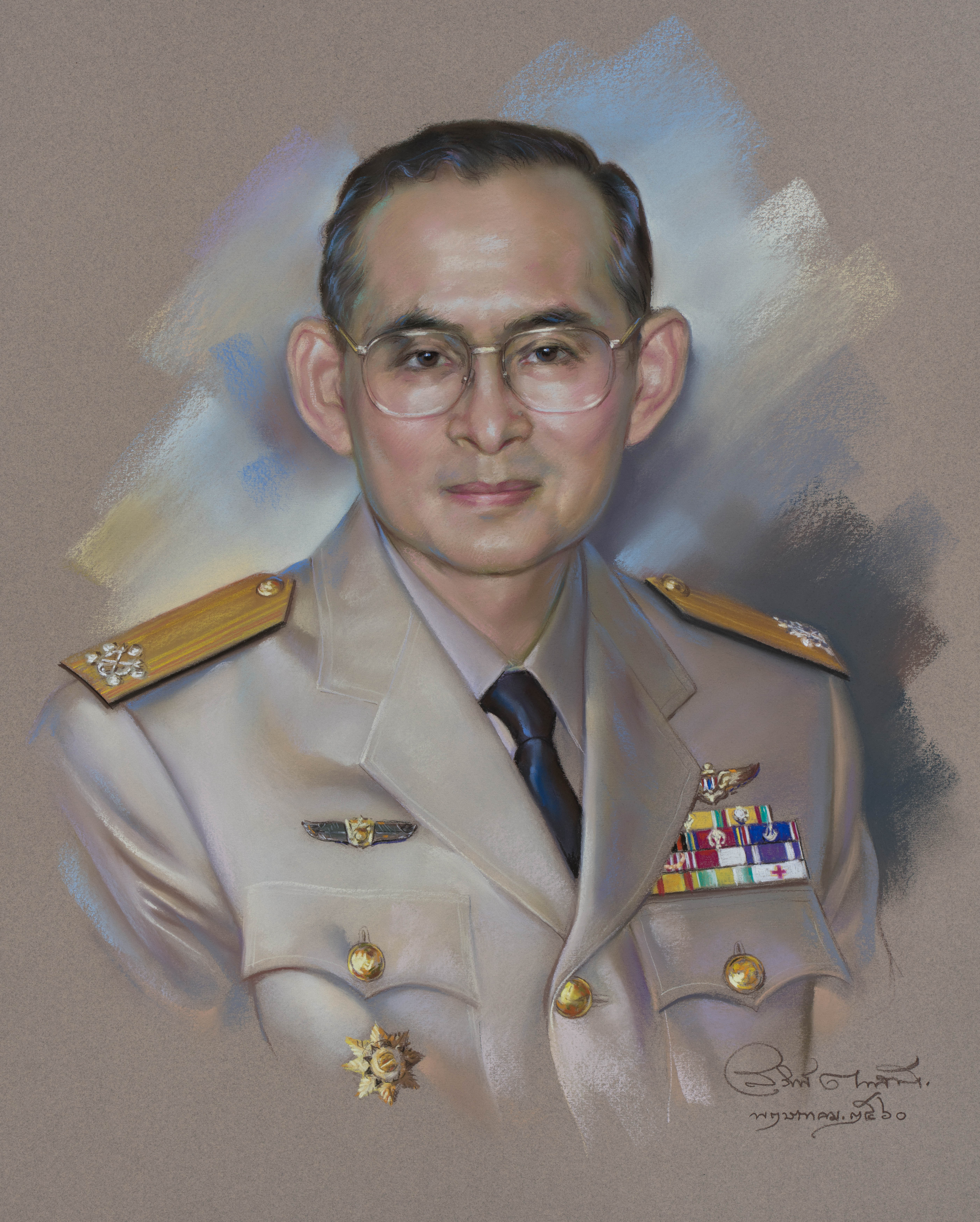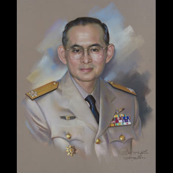 | คำอธิบาย : พระบรมฉายาสาทิสลักษณ์ พระบาทสมเด็จพระปรมินทรมหาภูมิพลอดุลยเดช ด้วยเทคนิค ภาพสีชอล์ก |