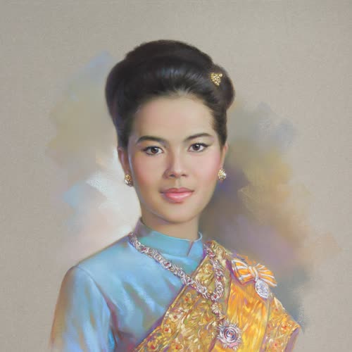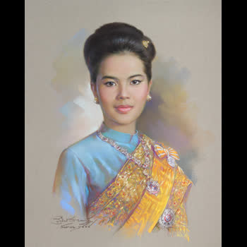 | คำอธิบาย : พระฉายาสาทิสลักษณ์ สมเด็จพระนางเจ้าสิริกิติ์ พระบรมราชินีนาถ ด้วยเทคนิค ภาพสีชอล์ก |
