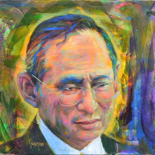 | คำอธิบาย : พระบรมฉายาสาทิสลักษณ์ พระบาทสมเด็จพระปรมินทรมหาภูมิพลอดุลยเดช ด้วยเทคนิคสีอะคริลิคบนผ้าใบ |
