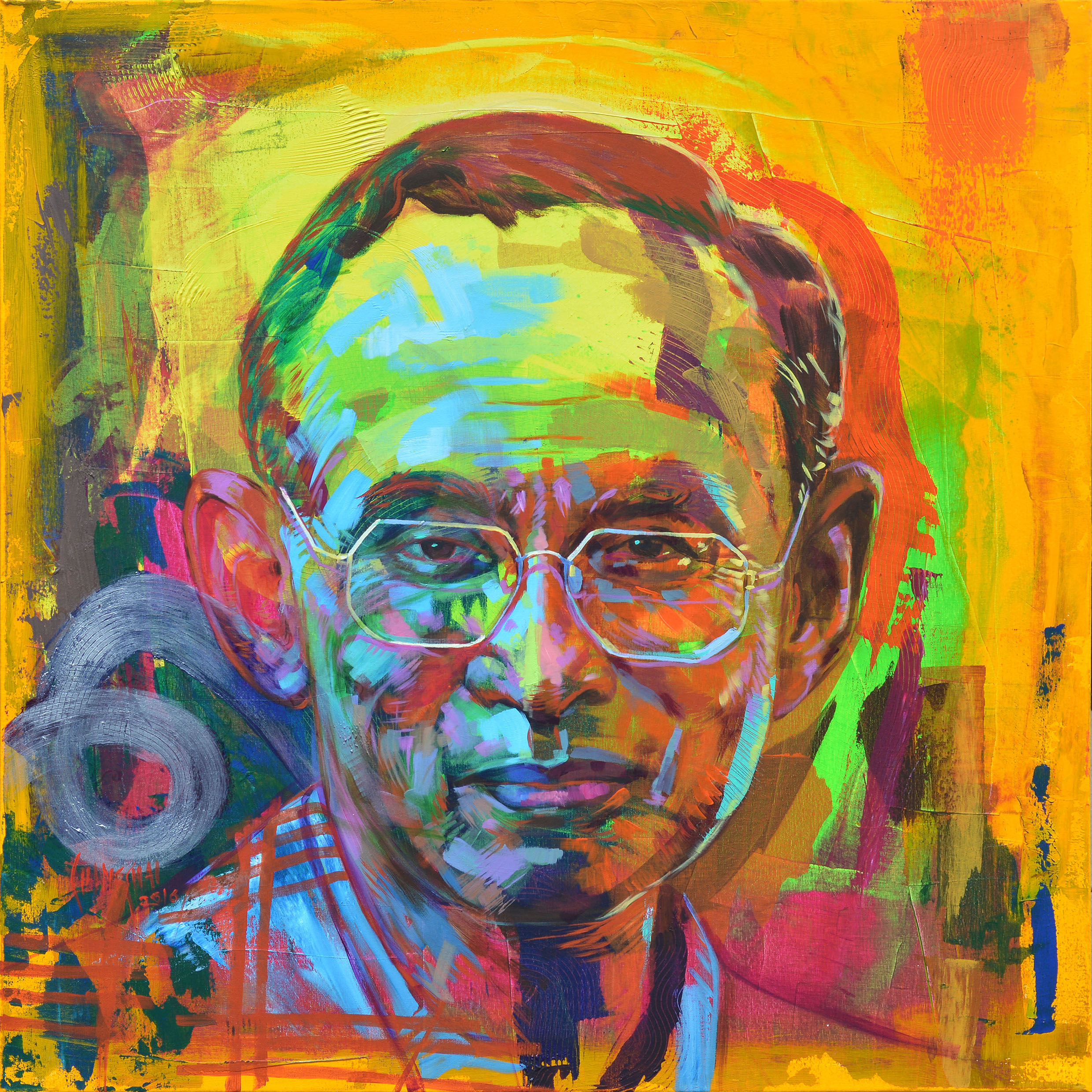 | คำสำคัญ : สีอะคริลิคบนผ้าใบ, ศิลปะ, ผลงานศิลป์, พ่อหลวง, ร.9, พระบรมฉายาสาทิสลักษณ์, รัชกาลที่ 9, พระบาทสมเด็จพระปรมินทรมหาภูมิพลอดุลยเดช, พระมหากษัตริย์ไทย |