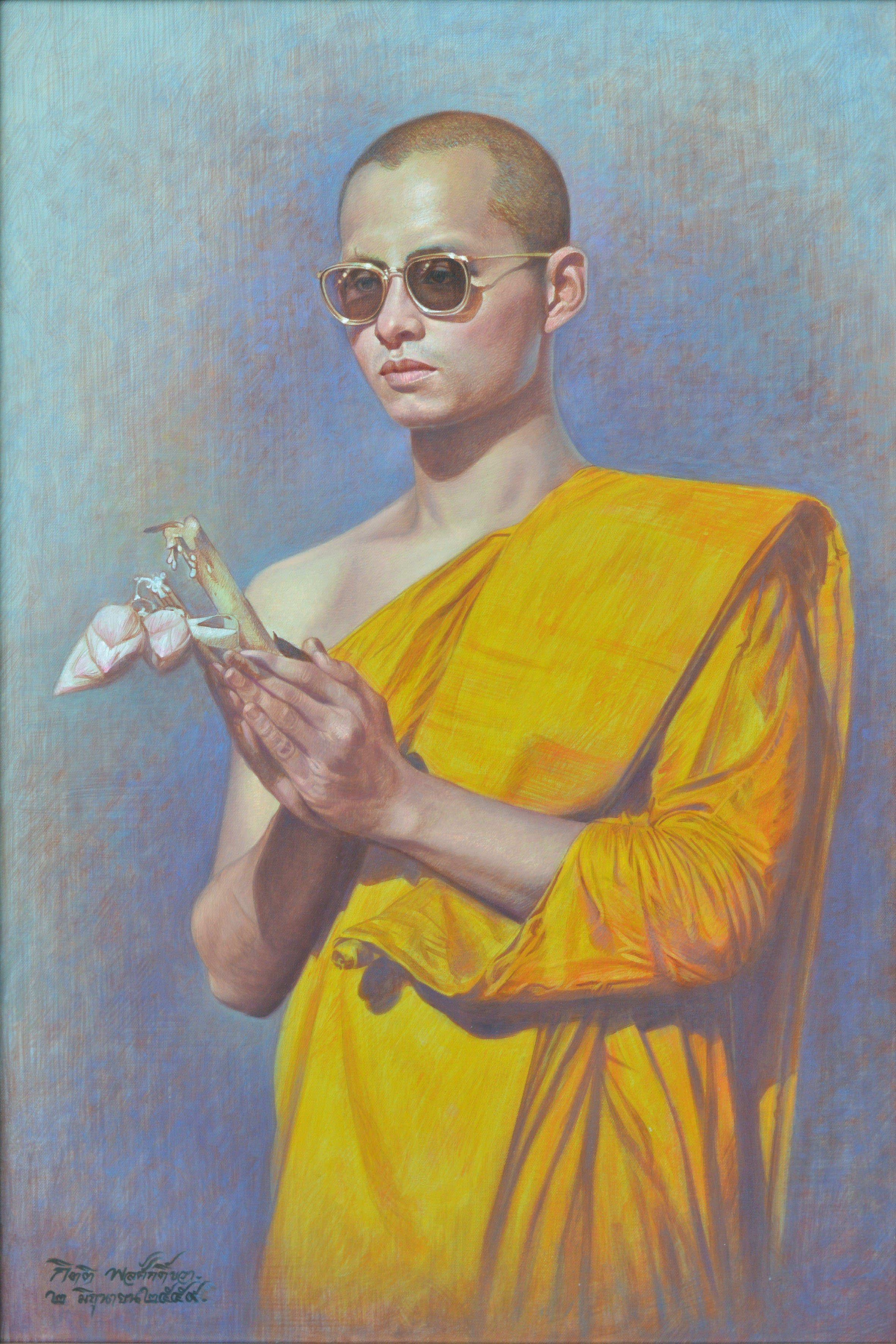 | คำอธิบาย : พระบรมฉายาสาทิสลักษณ์ พระบาทสมเด็จพระปรมินทรมหาภูมิพลอดุลยเดช ด้วยเทคนิคสีน้ำมันบนลินิน |