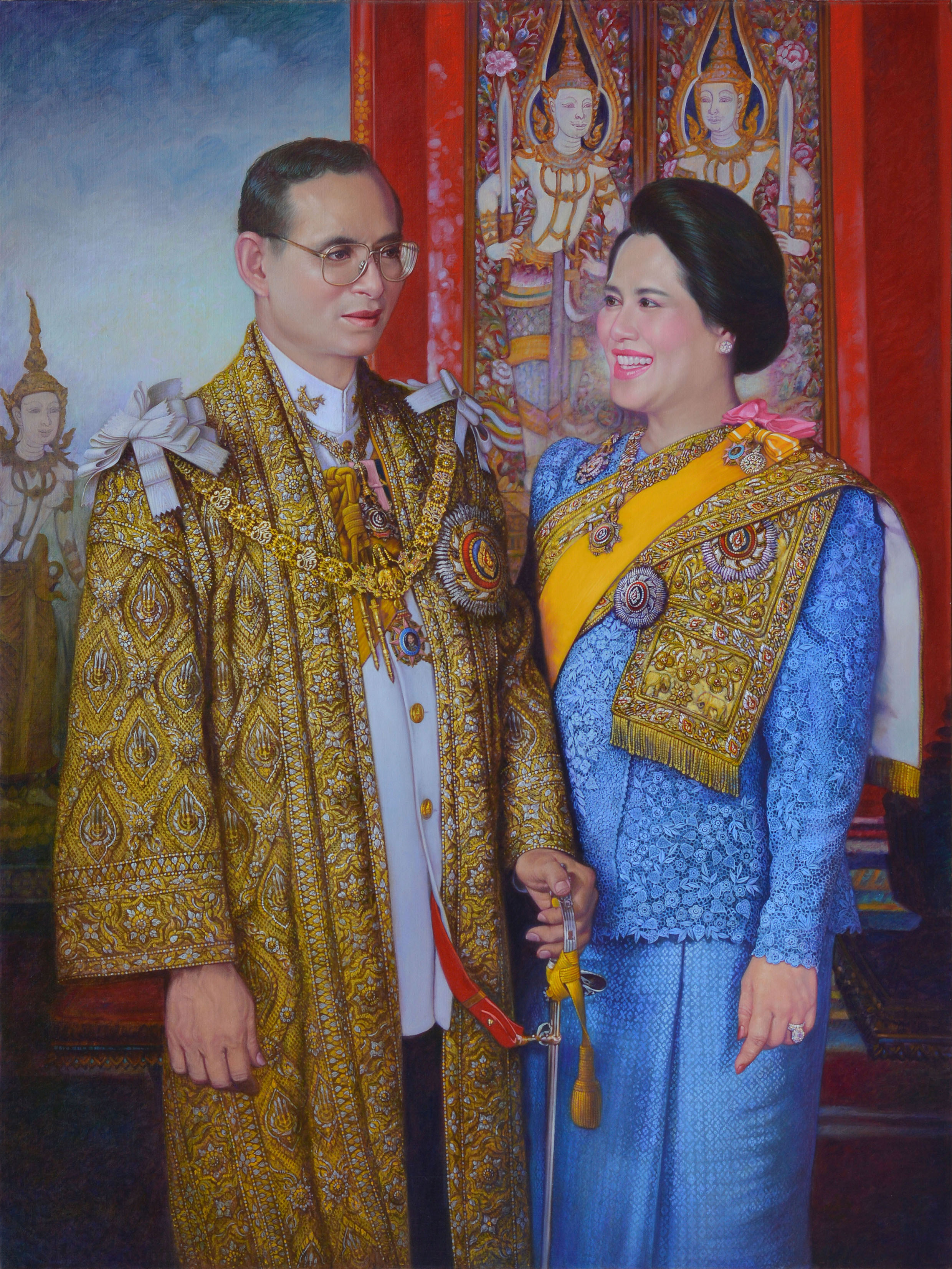 | คำอธิบาย : พระบรมฉายาสาทิสลักษณ์ พระบาทสมเด็จพระปรมินทรมหาภูมิพลอดุลยเดช ด้วยเทคนิคสีน้ำมันบนลินิน |