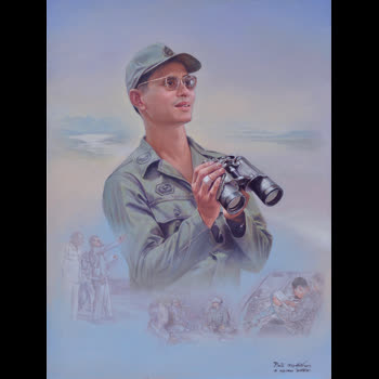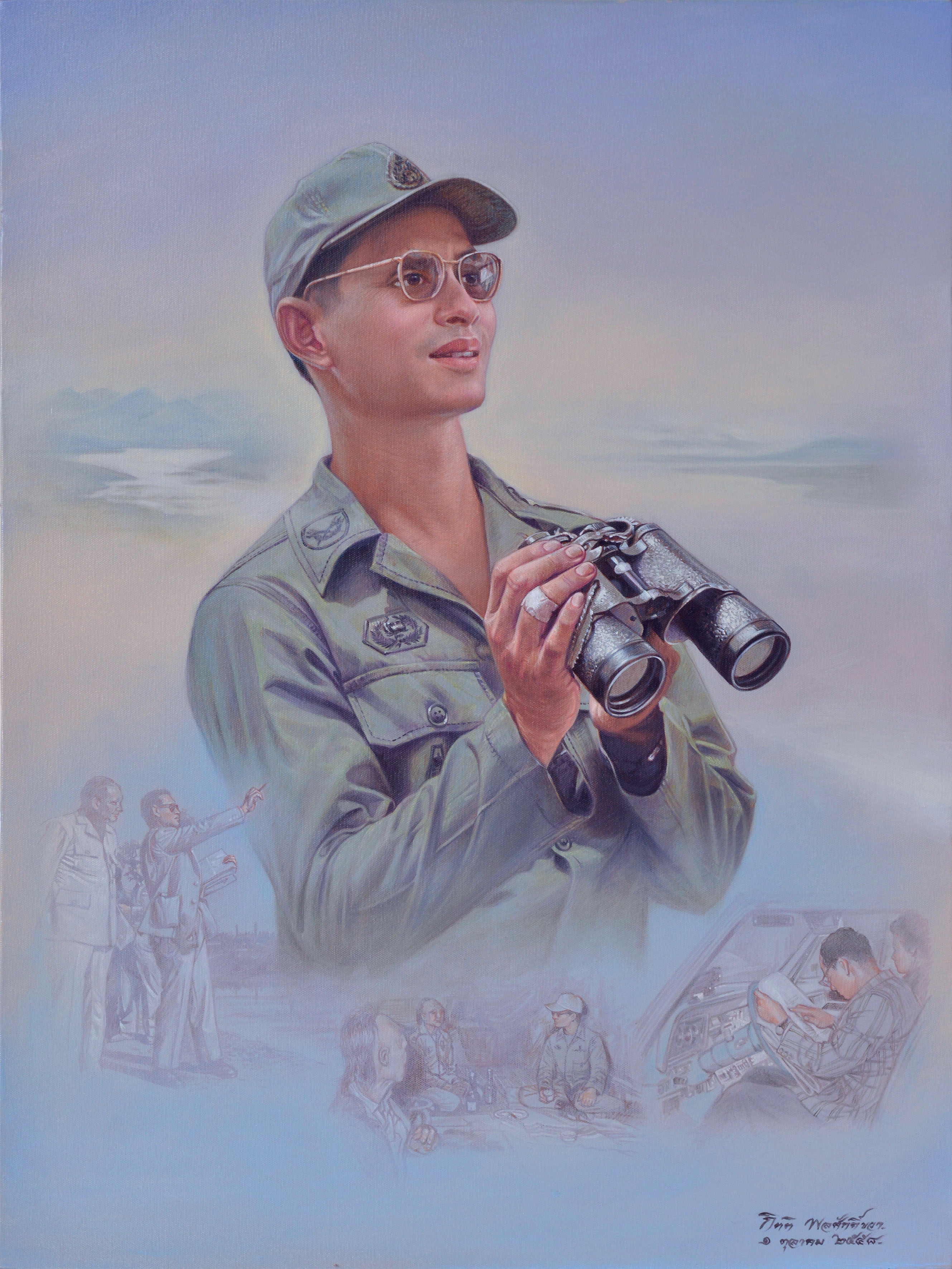 | คำอธิบาย : พระบรมฉายาสาทิสลักษณ์ พระบาทสมเด็จพระปรมินทรมหาภูมิพลอดุลยเดช ด้วยเทคนิคสีน้ำมันบนลินิน |