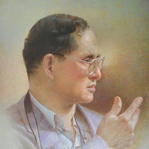 | คำอธิบาย : พระบรมฉายาสาทิสลักษณ์ พระบาทสมเด็จพระปรมินทรมหาภูมิพลอดุลยเดช ด้วยเทคนิคสีน้ำมันบนลินิน |