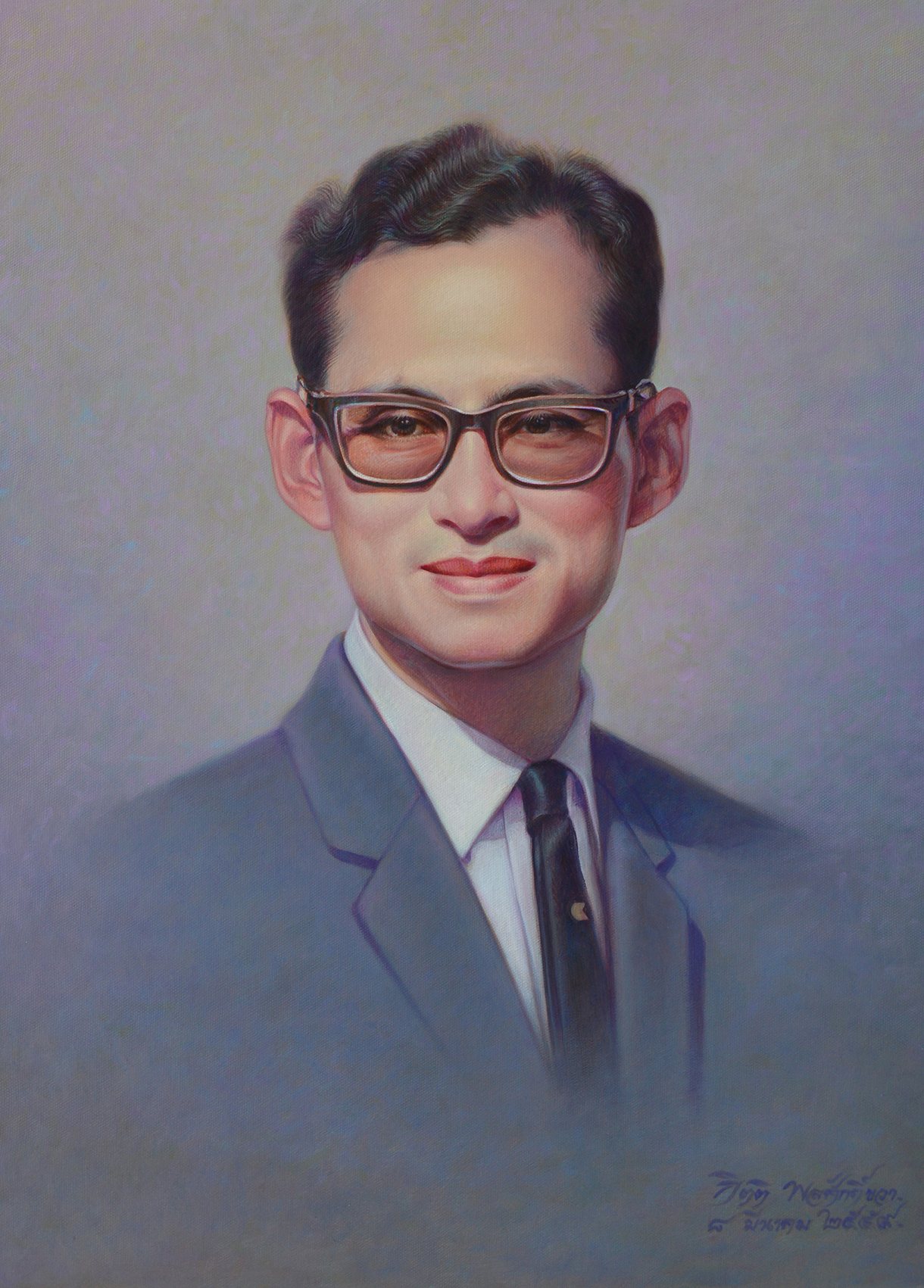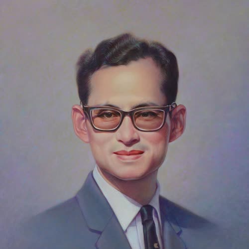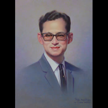 | คำอธิบาย : พระบรมฉายาสาทิสลักษณ์ พระบาทสมเด็จพระปรมินทรมหาภูมิพลอดุลยเดช ด้วยเทคนิคสีน้ำมันบนลินิน |