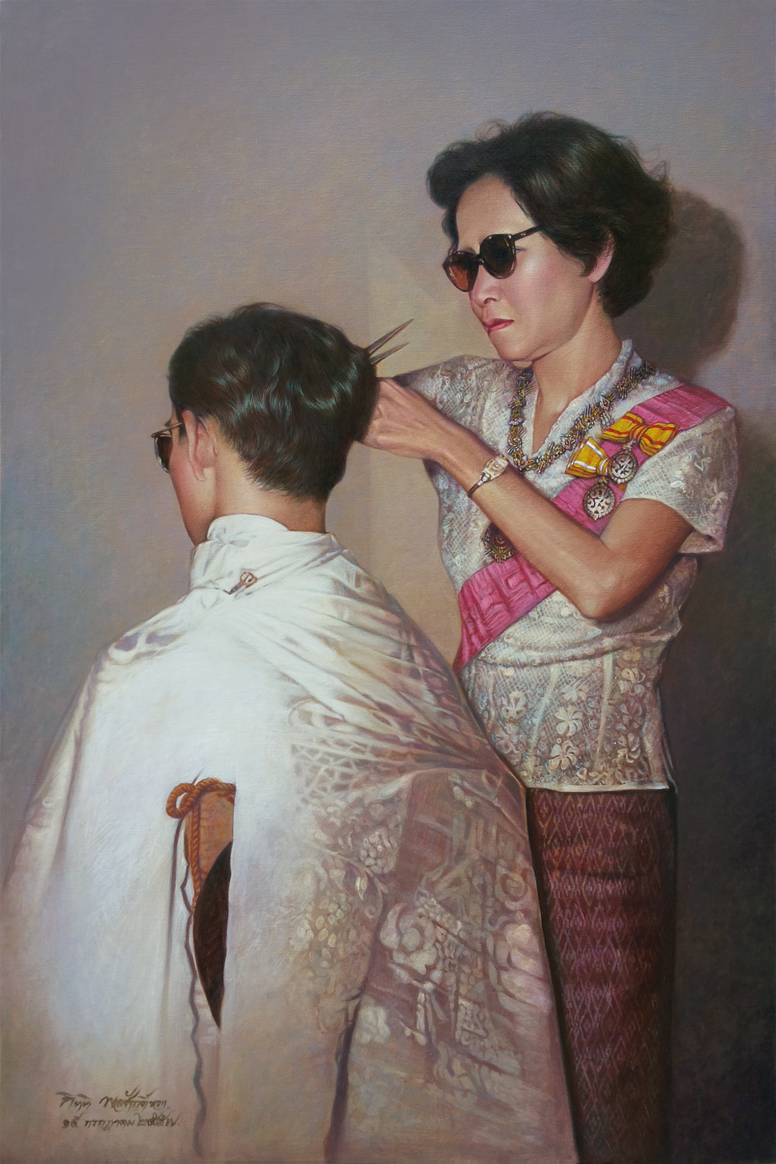| คำอธิบาย : พระบรมฉายาสาทิสลักษณ์ พระบาทสมเด็จพระปรมินทรมหาภูมิพลอดุลยเดช ด้วยเทคนิคสีน้ำมันบนลินิน |
