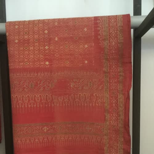 | คำอธิบาย : วัตถุจัดแสดงที่สำคัญในพิพิธภัณฑสถานแห่งชาติวัดพระบรมธาตุไชยา ต.พุมเรียง อ.ไชยา จ.สุราษฎร์ธานี คือ ผ้ายกสกุลช่าง ต.พุมเรียง ที่แวดวงนักสะสมผ้าไทยเรียกว่า ผ้ายกพุมเรียง หนึ่งในผ้าที่สำคัญของภาคใต้ ที่ปัจจุบันมีการสืบทอดการทอเพียงบ้านเดียว |