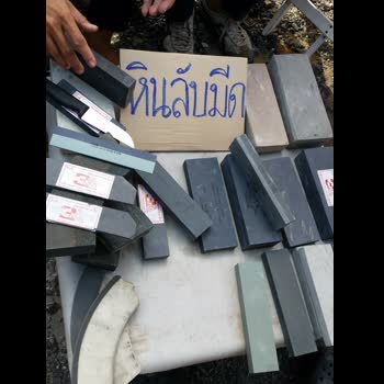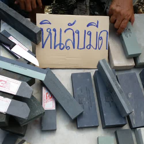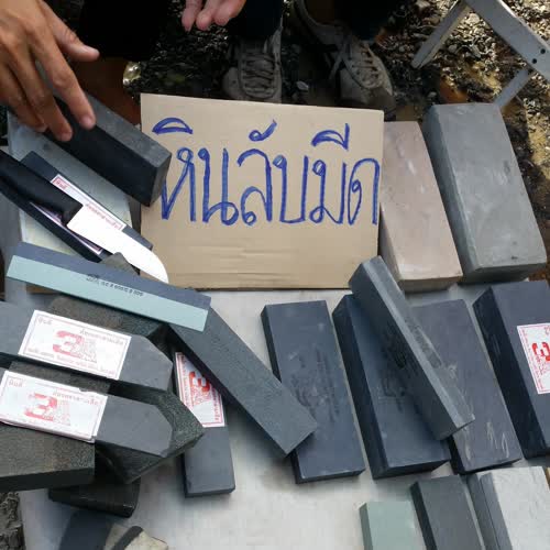 | คำอธิบาย : หินลับมีดของแท้ต้องผลิตจากหินธรรมชาติ ที่ให้คุณ ภาพสูงสุดต้องเป็น หินแร่เอมเมอรี่ และ แร่ซิลิมาไนต์ (Emery และ Silimanite) ซึ่งในประเทศไทยพบครั้งแรกที่บ้านโนนสาวเอ้ และ บ้านบุบอีปูน ตําบลตะขบ อําเภอปักธงชัย จังหวัดนครราชสีมา |